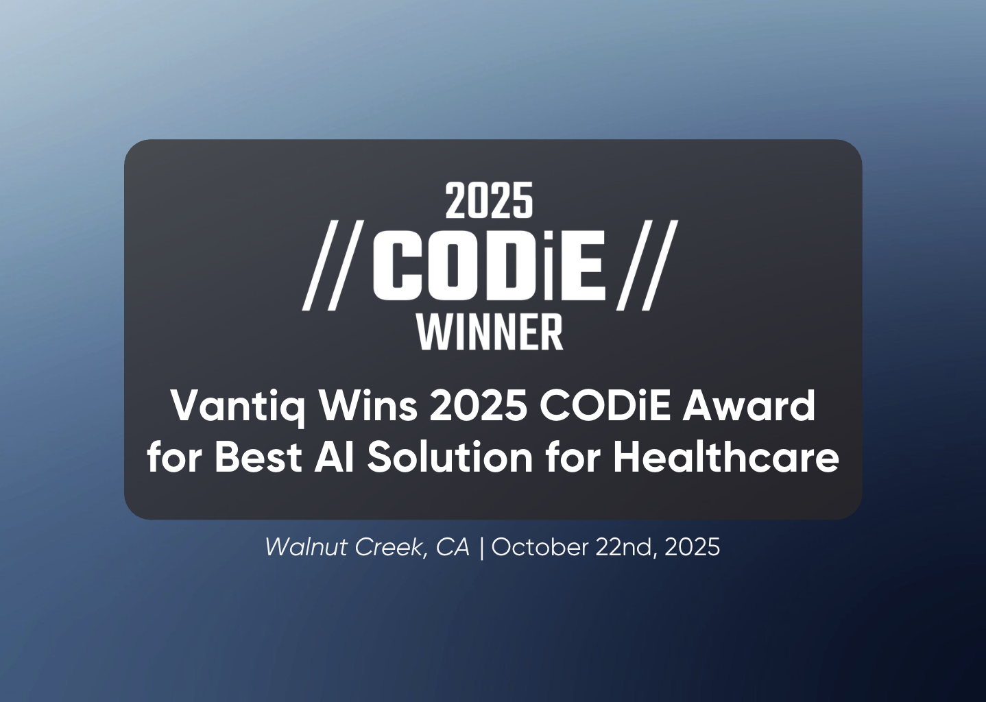 Walnut Creek, CA, October 22, 2025 – Vantiq, the global platform for real time AI orchestration and intelligent system development, today announced that its Vantiq Intelligence Platform has been named a 2025 CODiE Award Winner for Best AI Solution for Healthcare.